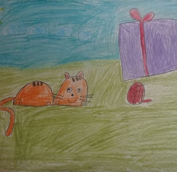Жил был котёнок Тимка. Он очень любил играть с клубочком. И однажды клубочек укатился к коробке. В коробке оказался щенок. Тимка согрел его и с тех пор они стали лучшими друзьями
